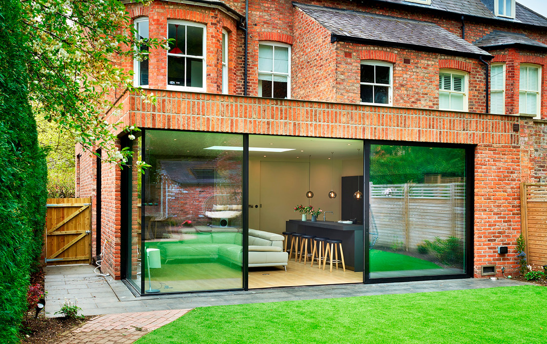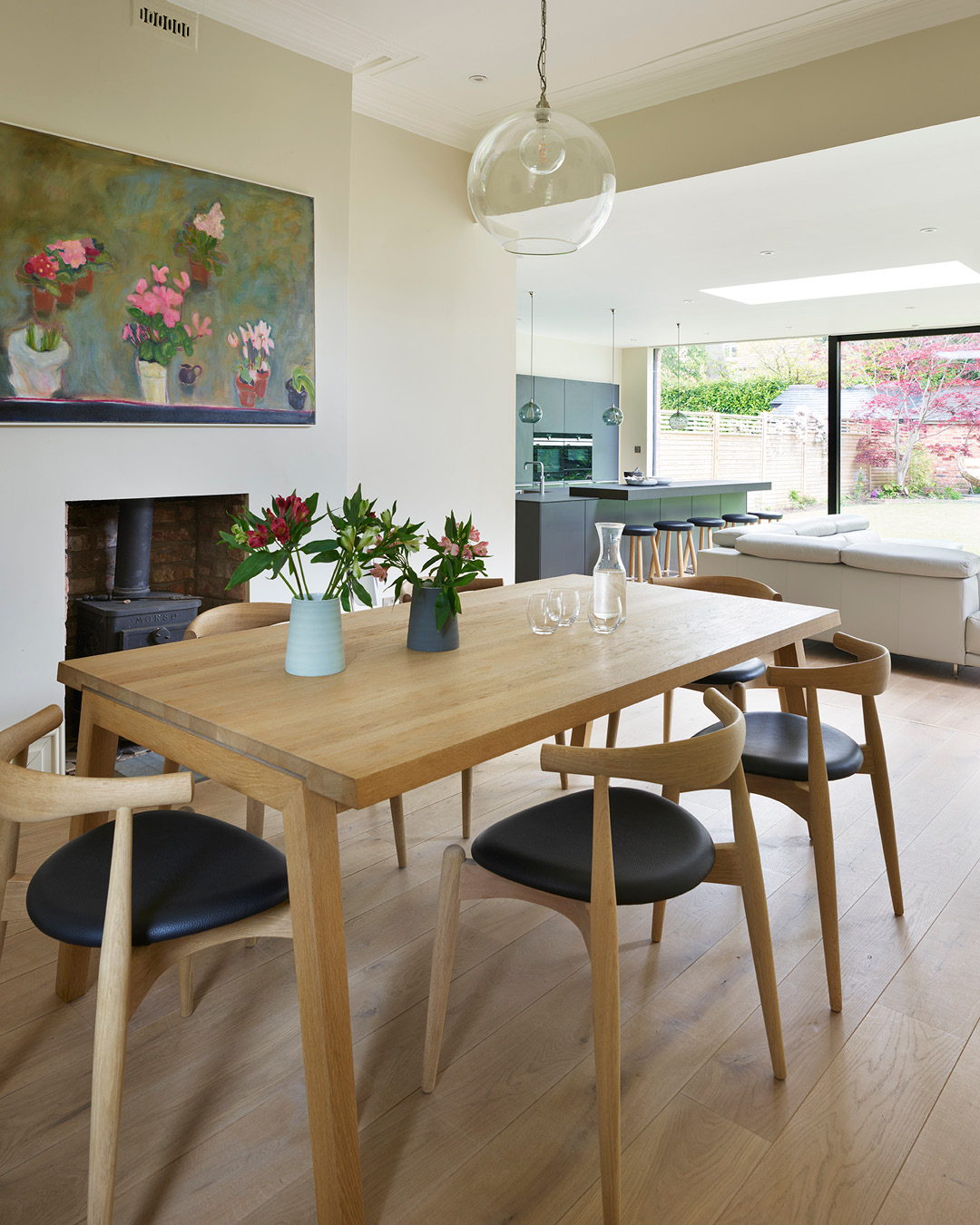 This light filled modern extension lends itself to the timeless clean lines of the bulthaup b3 in anthracite. Designed with sociable living at it's heart placing the functional cooking, prep and washing appliances on the island.