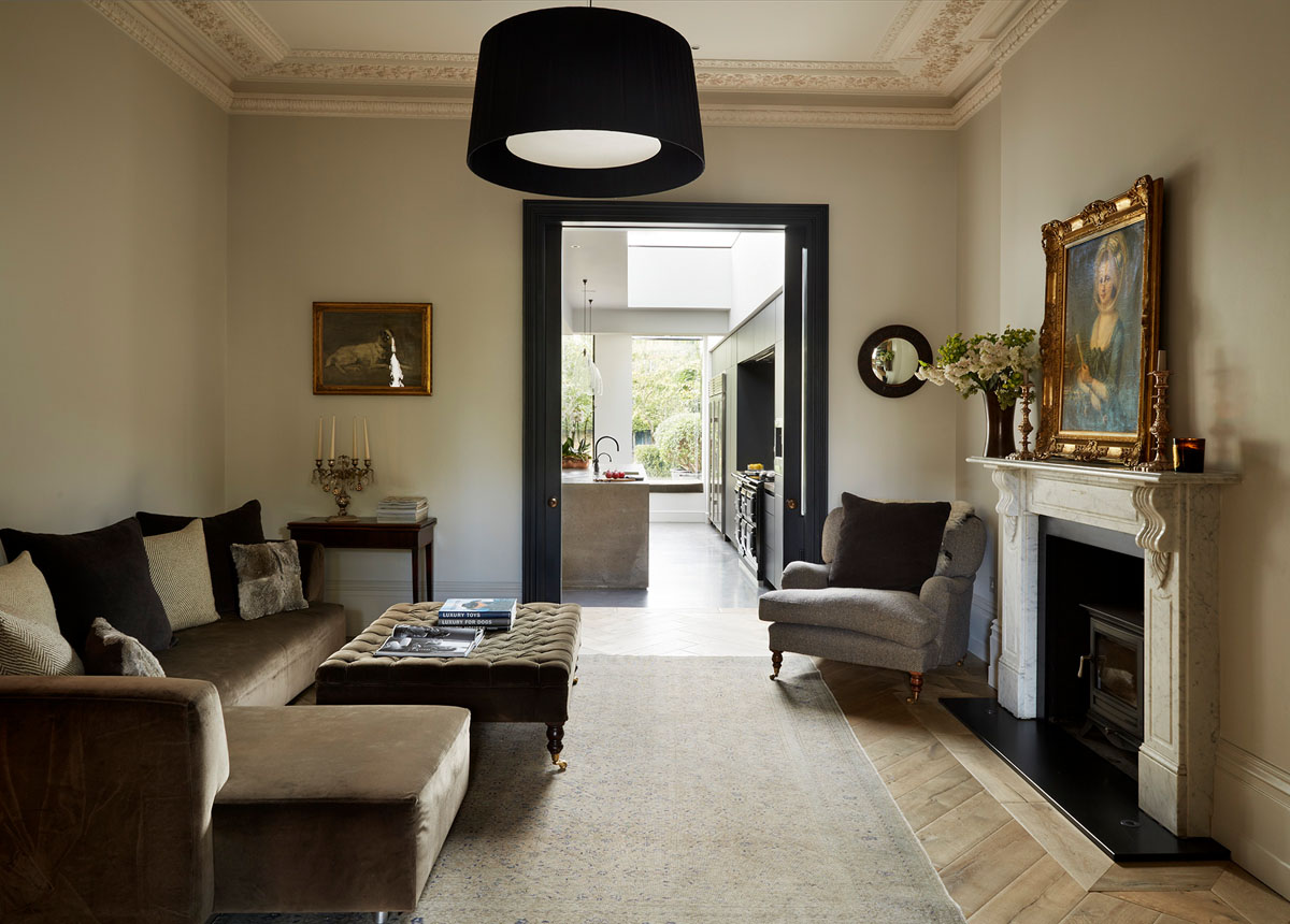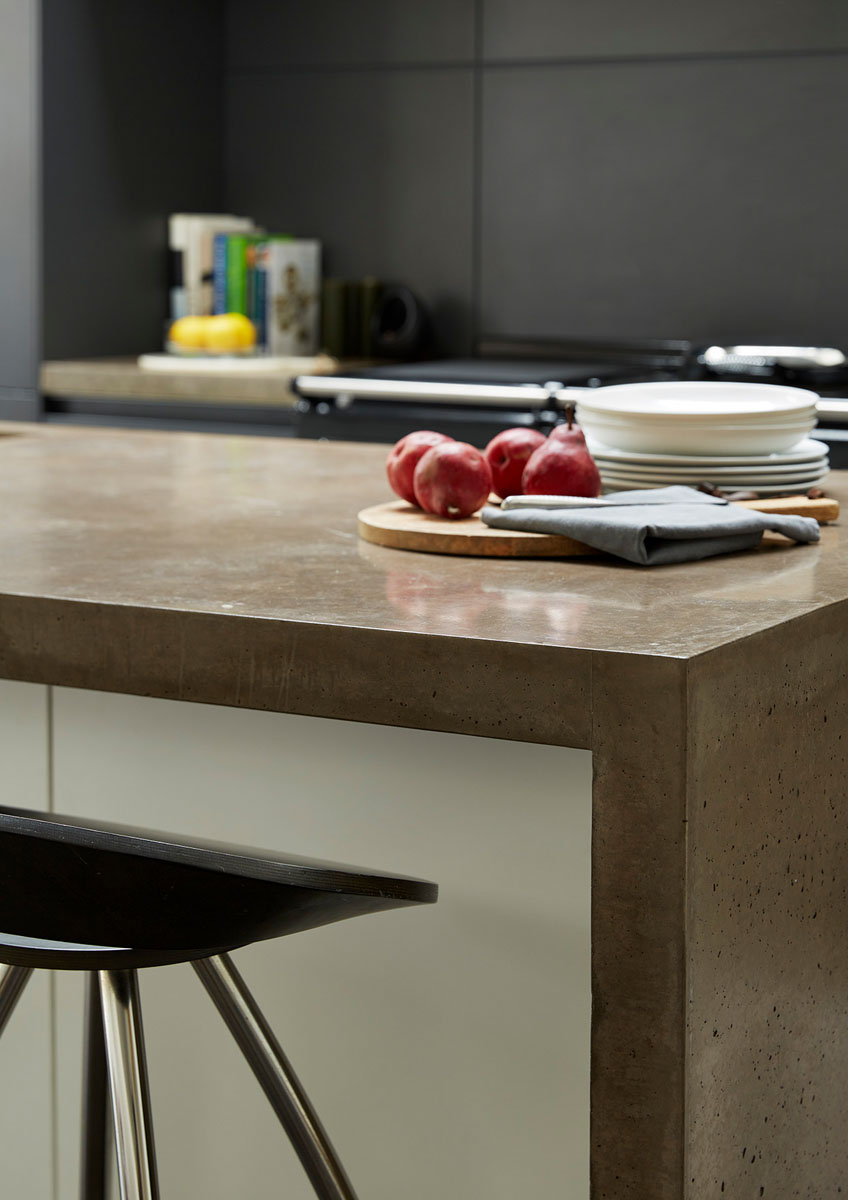 This architectural extension to a traditional Victorian house, with it's polished concrete monoblack and bulthaup b3 furniture in graphite make a bold and confident statement that runs through the house.