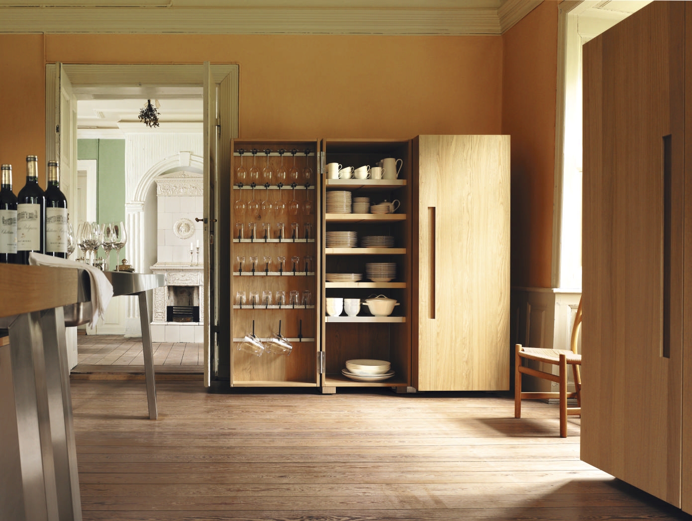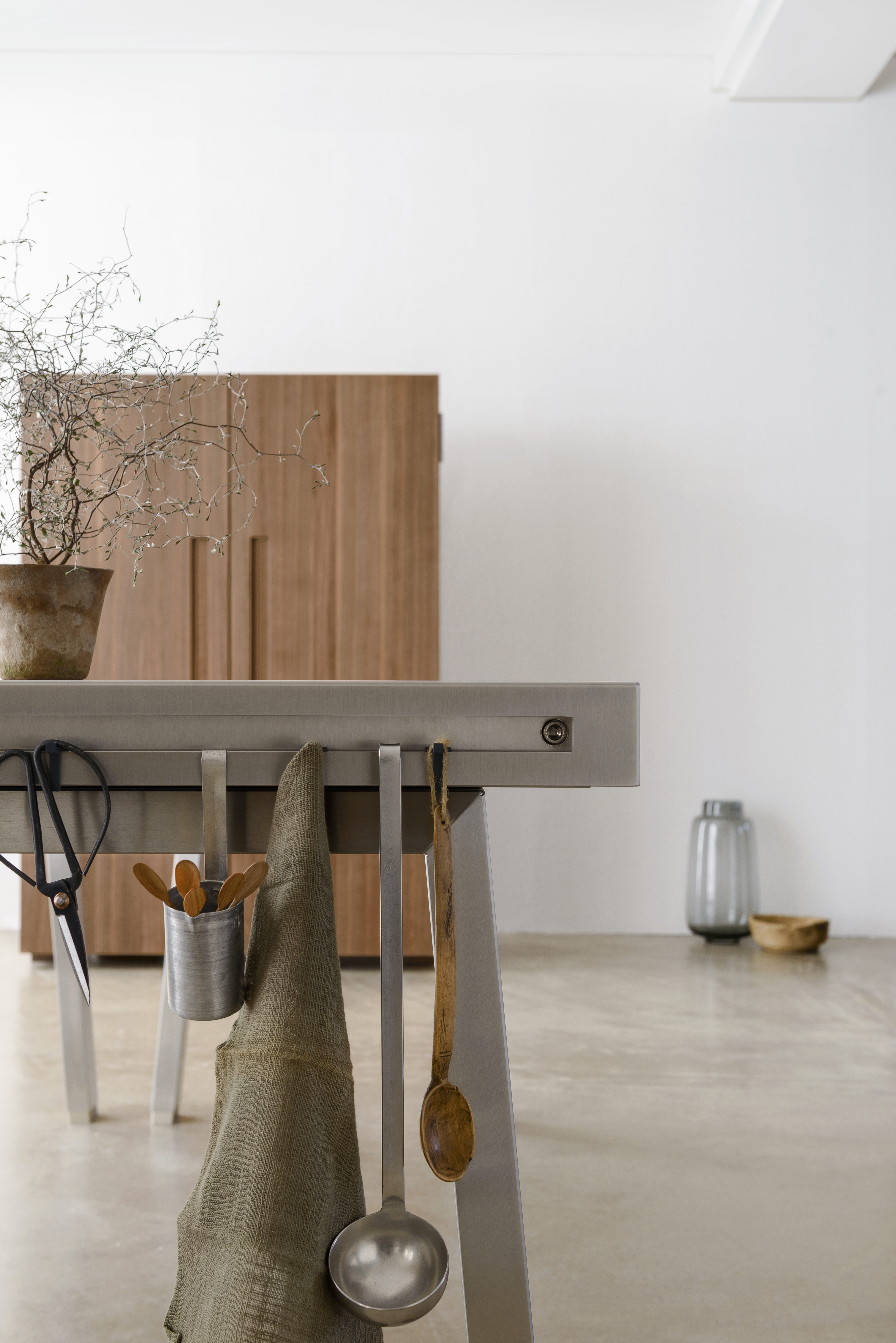 The bulthaup b3 kitchen furniture is presented in Graphite and Flint laminate with 12mm porcelain work surfaces.