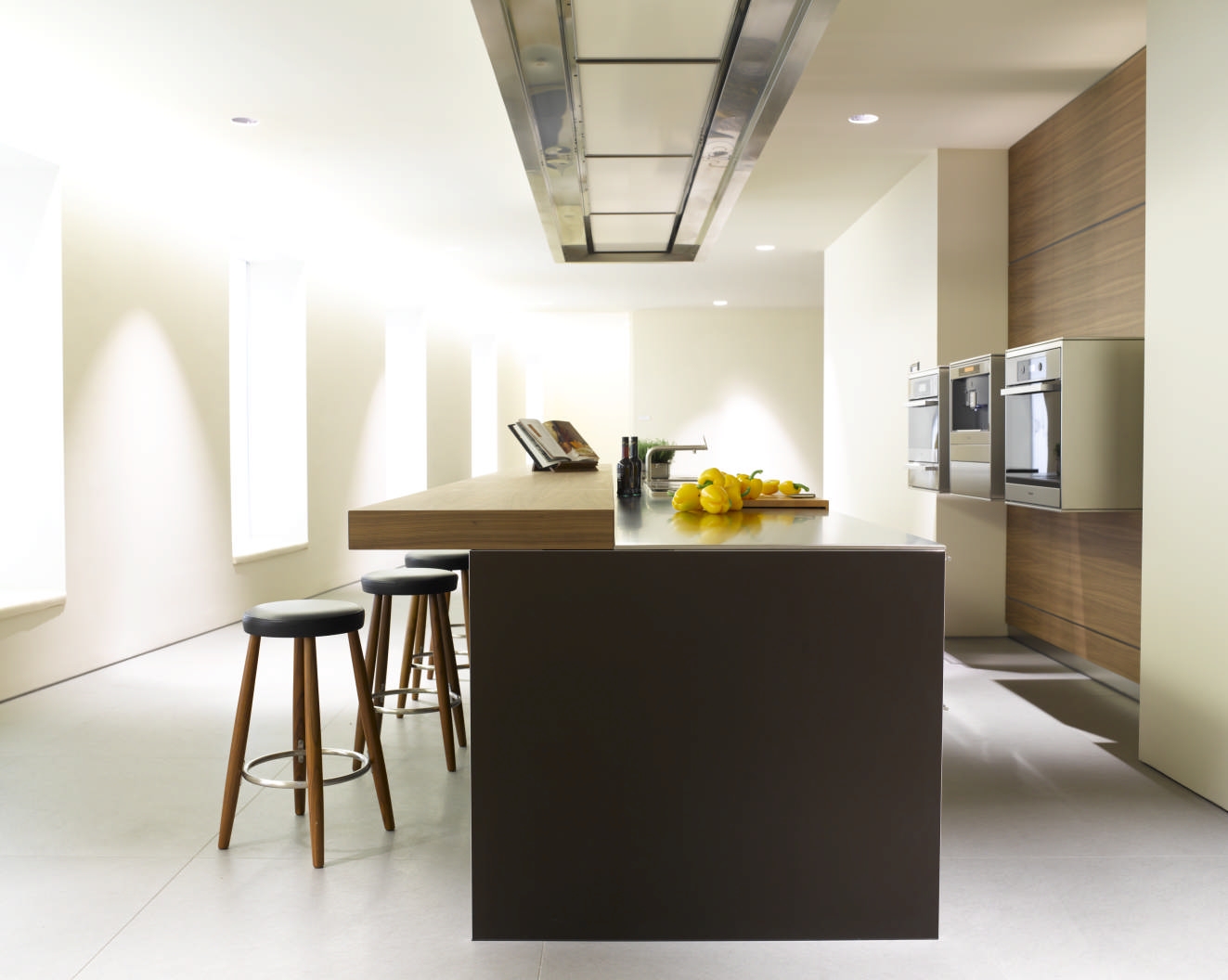 Bulthaup b3 presented in Graphite lacquer finish and stainless steel worktops.