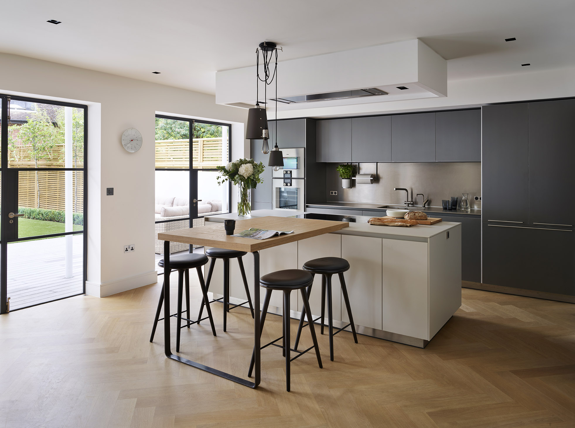 The client's love for cooking and entertaining as a family was a key consideration in the design process. We worked closely with Lewandowski Architects to bring the concept for the new bespoke-style kitchen design to life and ensure a seamless flow between the kitchen and the connecting living spaces, indoors and outdoors.