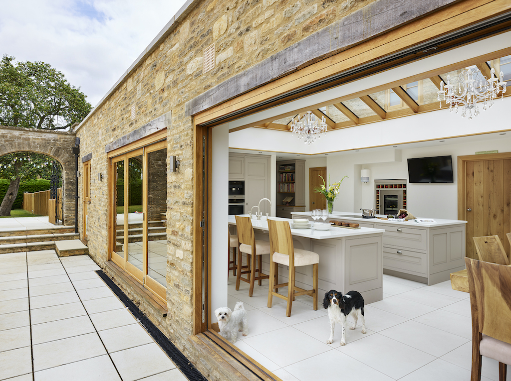 Plenty of natural light floods into this spacious conservatory-style kitchen extension