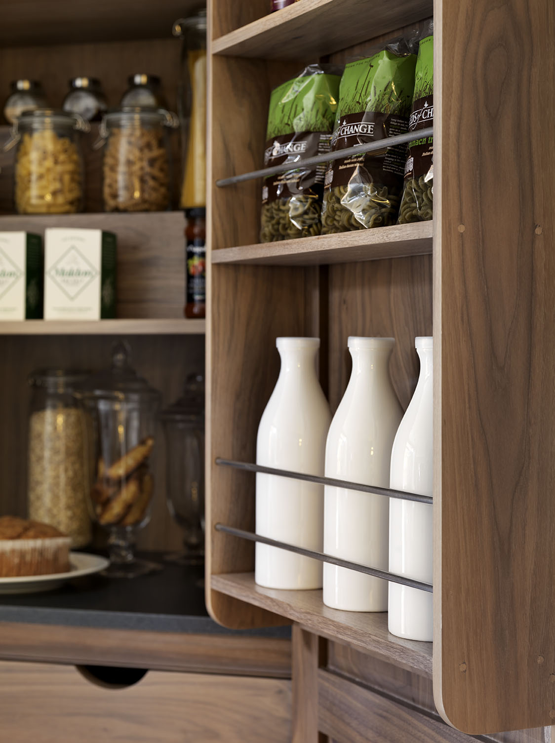 A well-stocked kitchen is a happy kitchen, and there’s no better way to treat the cooks in your home than to give them a traditional larder. Once the heart of every traditional kitchen, the larder is making a return. Whether you dream of a walk-in pantry or beautifully integrated kitchen storage, our designs blend craftsmanship with character. Every bespoke larder and pantry is crafted to fit your space and the way you live. While the design will be bespoke, each one will be functional, elegant and made to last.